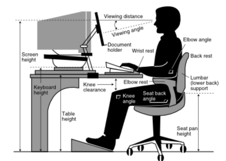 적절한 화면 거리 및 높이 유지: 컴퓨터 화면은 가능한 높게 설정하고, 사용자로부터 약 50~70cm 거리에 위치시키는 것이 좋습니다. 이상적인 거리는 팔을 뻗어서 간신히 닿을 수 있는 정도이며, 화면의 높이는 눈높이에 맞춰 조절하는 것이 바른 자세 유지에 도움이 됩니다.