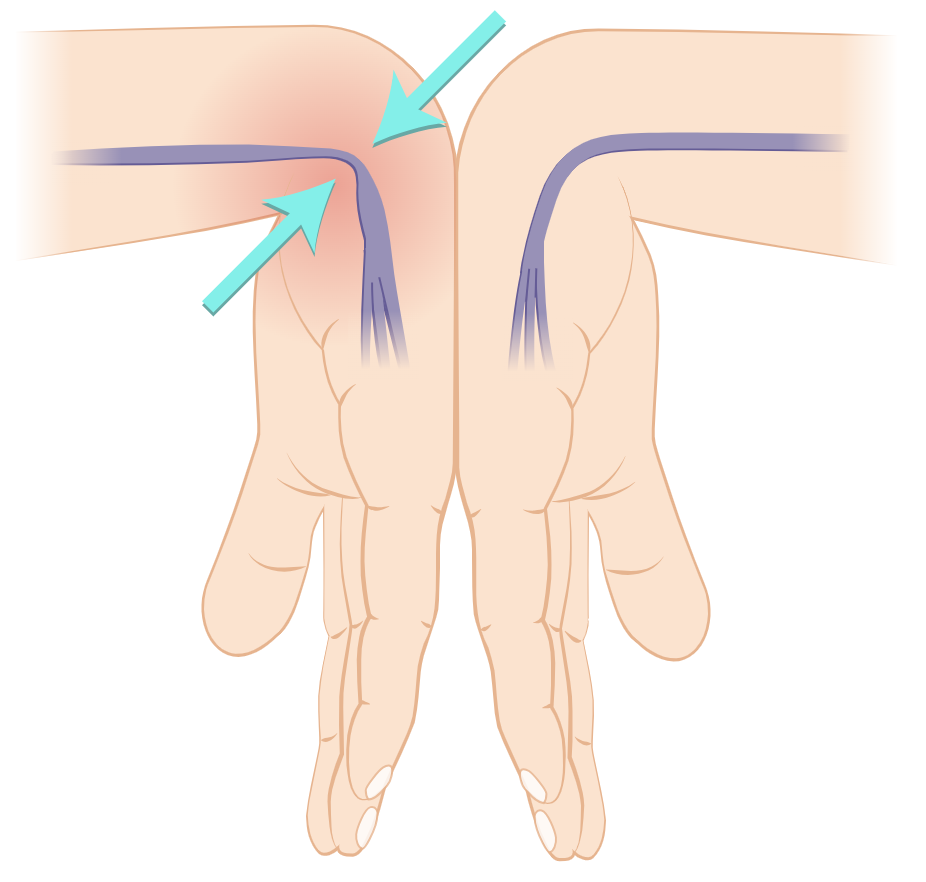 ✅ 엄지와 검지를 세게 누르거나 손목을 두드렸을 때 손끝까지 전기가 오듯 아프다면 의심됩니다. (Tinel’s sign)