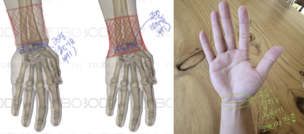 이제 손목의 해부학적 관점에서 중요한 부위들을 한번 살펴볼까요?